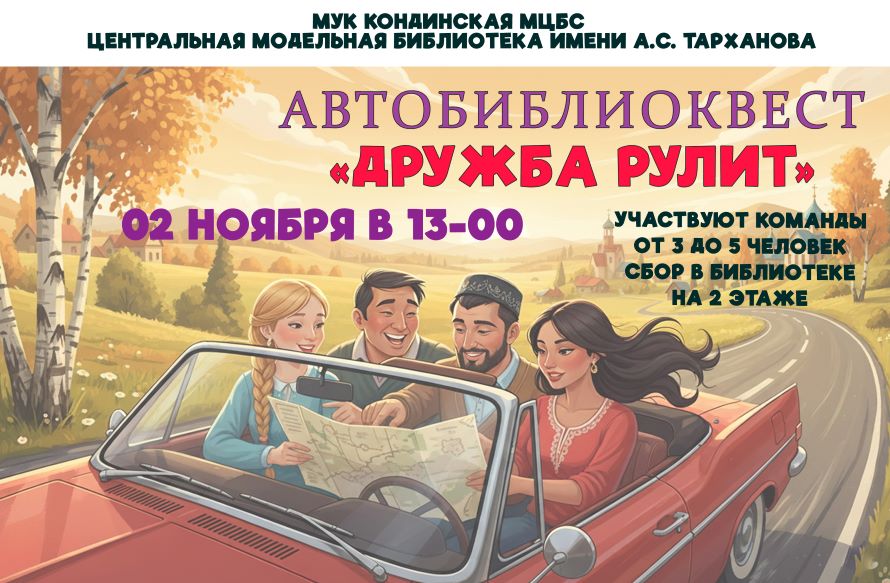 Уважаемые междуреченцы и гости поселка! Приглашаем вас поучаствовать в АвтоБиблиоКвесте под названием «Дружба рулит!».