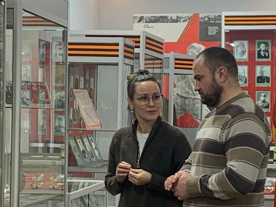 С мая 2025 года сотрудники Кондинской детской библиотеки - филиала № 21 и МУК «Районный краеведческий музей имени Нины Степановны Цехновой» реализуют значимый проект "Герои земли Кондинской". Цель проекта – сбор информации об участниках СВО, локальных войн и Великой Отечественной войны, проведение тематических мероприятий и архивная работа, направленная на сохранение памяти о подвигах земляков. В рамках проекта уже состоялось немало встреч с участниками СВО. И нам особенно радостно сообщить, что в период своего краткосрочного отпуска участник СВО гвардии старший лейтенант Александр Красов (позывной «Юрист») нашел время посетить районный краеведческий музей и Кондинскую детскую библиотеку.