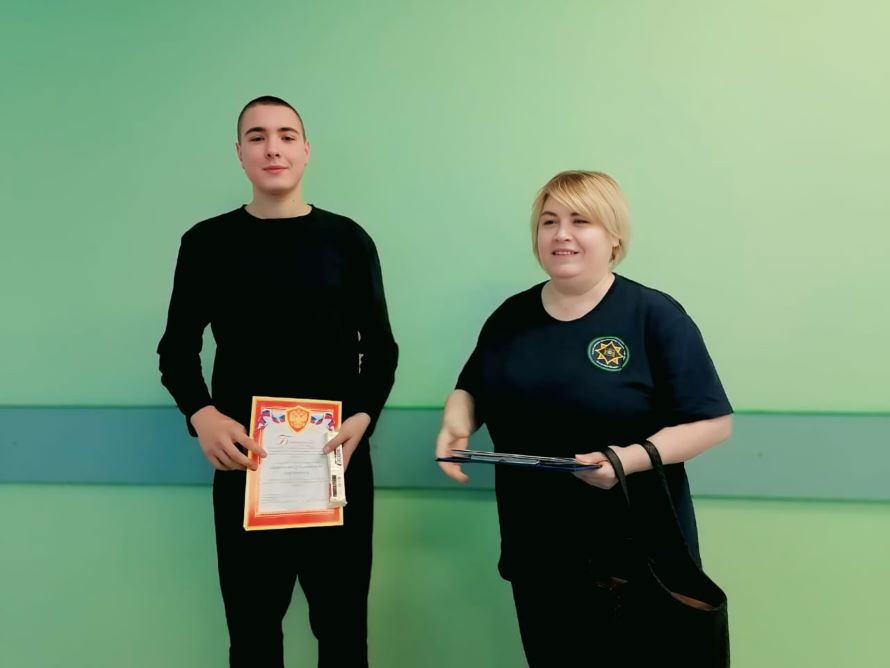 Сотрудники пожарной части (пгт. Мортка) вручили благодарственные письма: ученику 9 класса Мотрткинской школы Анатолию Дружинину и студенту Междуреченского агропромышленного колледжа Кириллу Исмайлову.