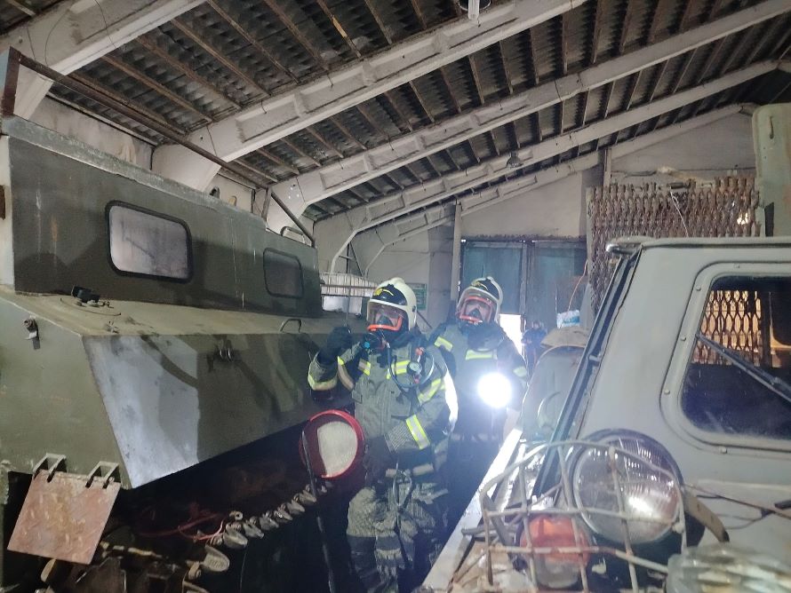 По легенде, в одном из гаражных боксов произошло возгорание моторного отсека гусеничной машины ГАЗ-71. Сигнал о происшествии поступил на пульт диспетчера пожарной охраны, после чего на место были незамедлительно направлены пожарные расчеты.