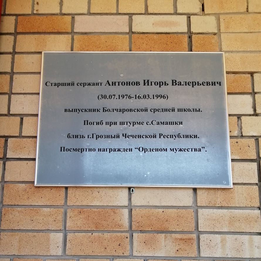 с. Болчары Мемориальная доска Антонову Игорю Валерьевичу Расположен по ул. Колхозная,1, с. Болчары. |