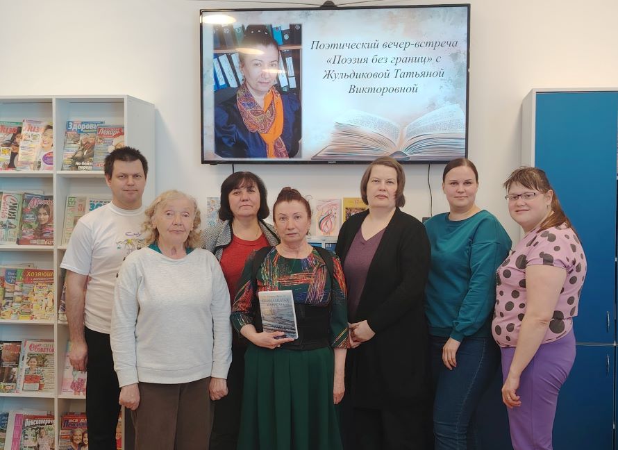 В тёплой и уютной атмосфере отдела обслуживания МУК Кондинская МЦБС прошёл поэтический вечер «Поэзия без границ» с талантливой поэтессой, жительницей Междуреченского, участницей литературного объединения «Возрождение» Татьяной Викторовной Жульдиковой.