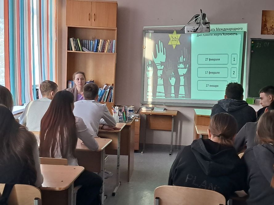 27 января, в Международный день памяти жертв Холокоста, в МКОУ Леушинской средней школе прошёл урок памяти «Без срока давности», призванный сохранить историческую правду о трагедии и уважение к ценности человеческой жизни. Мероприятие, ориентированное на старшеклассников, организовано и проведено заведующим Леушинской модельной библиотекой им. Н.В. Лангенбах Залетаевой И.М. и специалистом-организатором МАУ РЦМИ «Ориентир» Южаковой З.В. Эта дата была выбрана не случайно, именно в этот день в 1945 году Красная Армия освободила крупнейший нацистский лагерь смерти Аушвиц-Биркенау (Освенцим). Вторая мировая война принесла народам всего мира неисчислимые бедствия. Среди моря человеческих страданий особо говорят о еврейской катастрофе «Холокост» - символ газовых камер и крематориев.