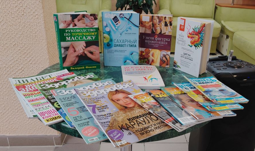 Завершилось мероприятие приглашением в библиотеку. Для участников подготовили выставку изданий о здоровье — от научно‑популярных книг и журналов до практических советов по питанию, движению и режиму дня.